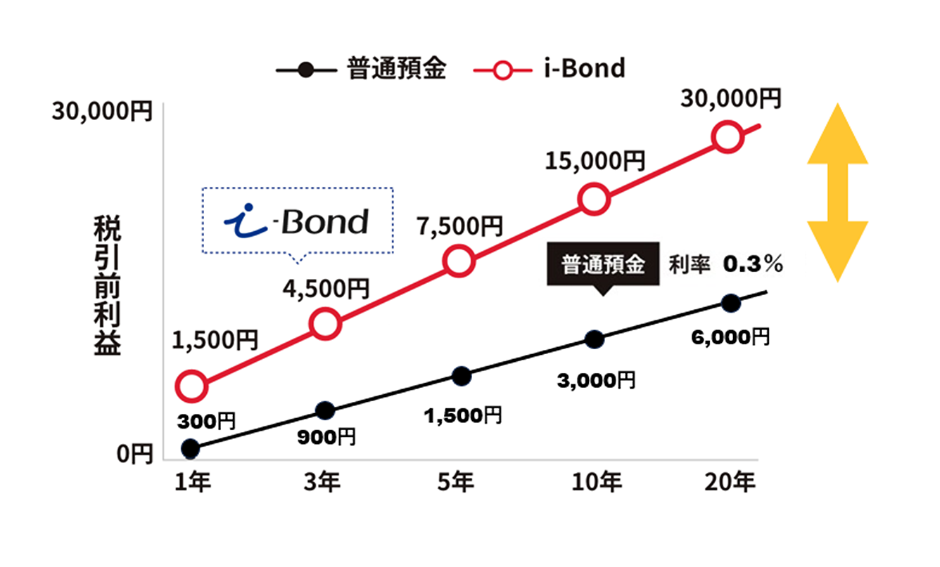 “i-Bond”と“普通預金”に10万円を置いた場合の利益比較