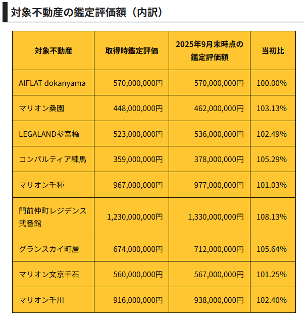 本日は、速報ベースになりますが、2025年9月末時点の不動産鑑定評価額をご報告いたします。