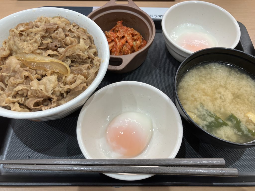 そこで入ったのが牛丼屋です。アタマ大盛、半熟卵2ヶ、キムチ付をたいらげると、早速の睡魔です。仕方ないので仮眠でも取りますか。